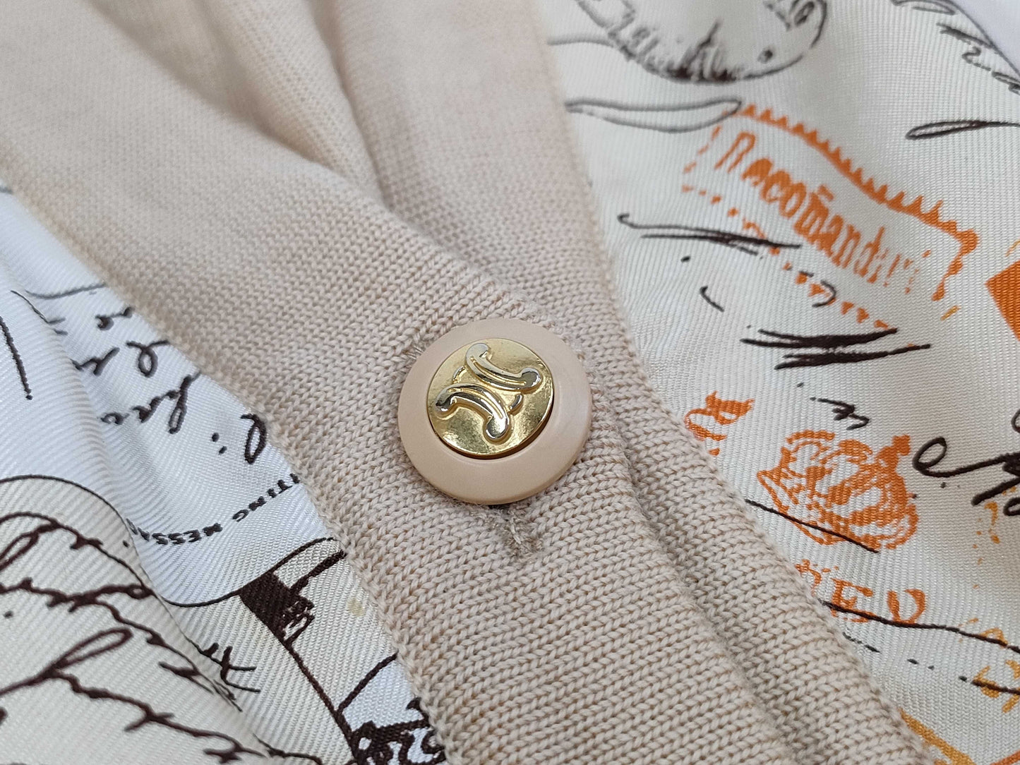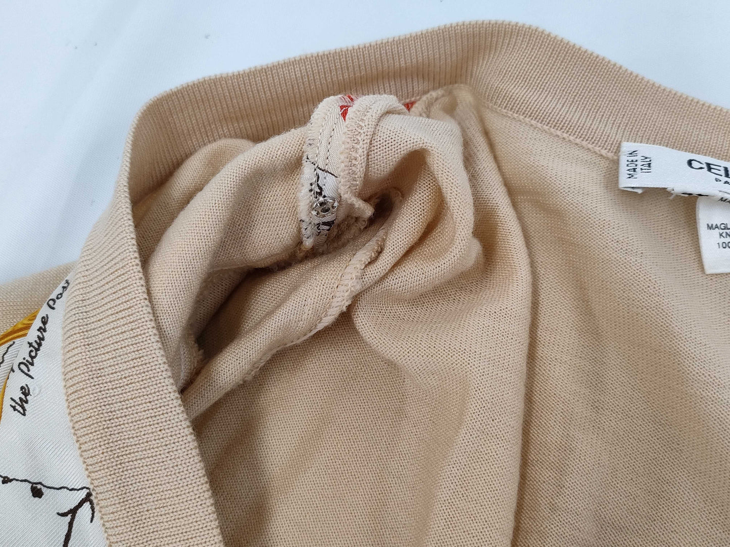 CELINE Triomphe Cardigan with Scarf Pattern, Size 40