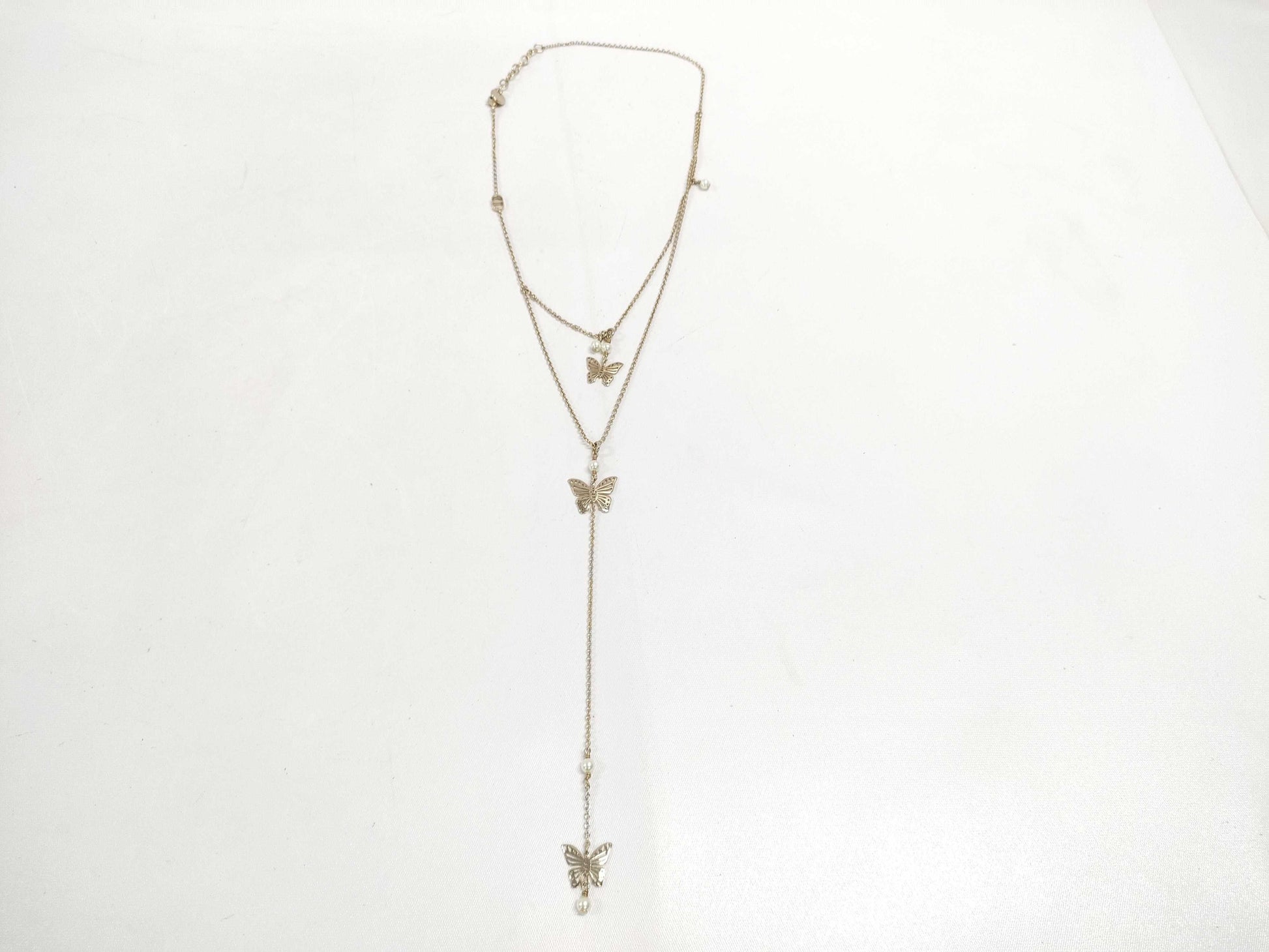 Dior Christian Dior Butterfly Motif GP Faux Pearl Necklace