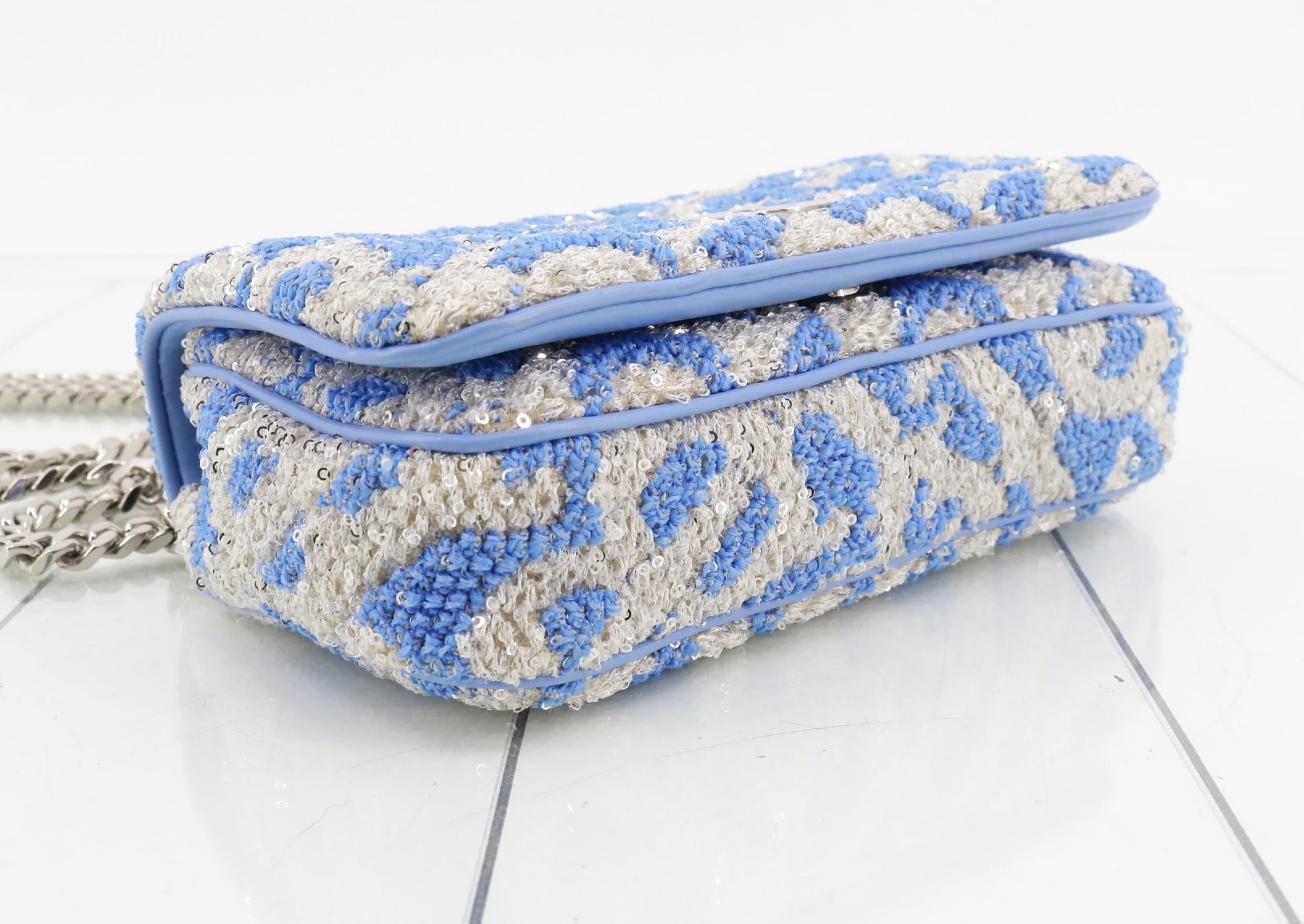 BURBERRY Sequin Blue Silver Chain Shoulder Bag