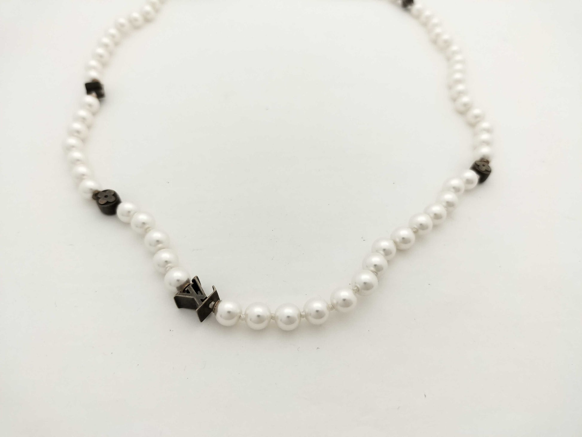 LOUIS VUITTON LV Monogram Slim Pearl Necklace M02235 LE4214 Necklace