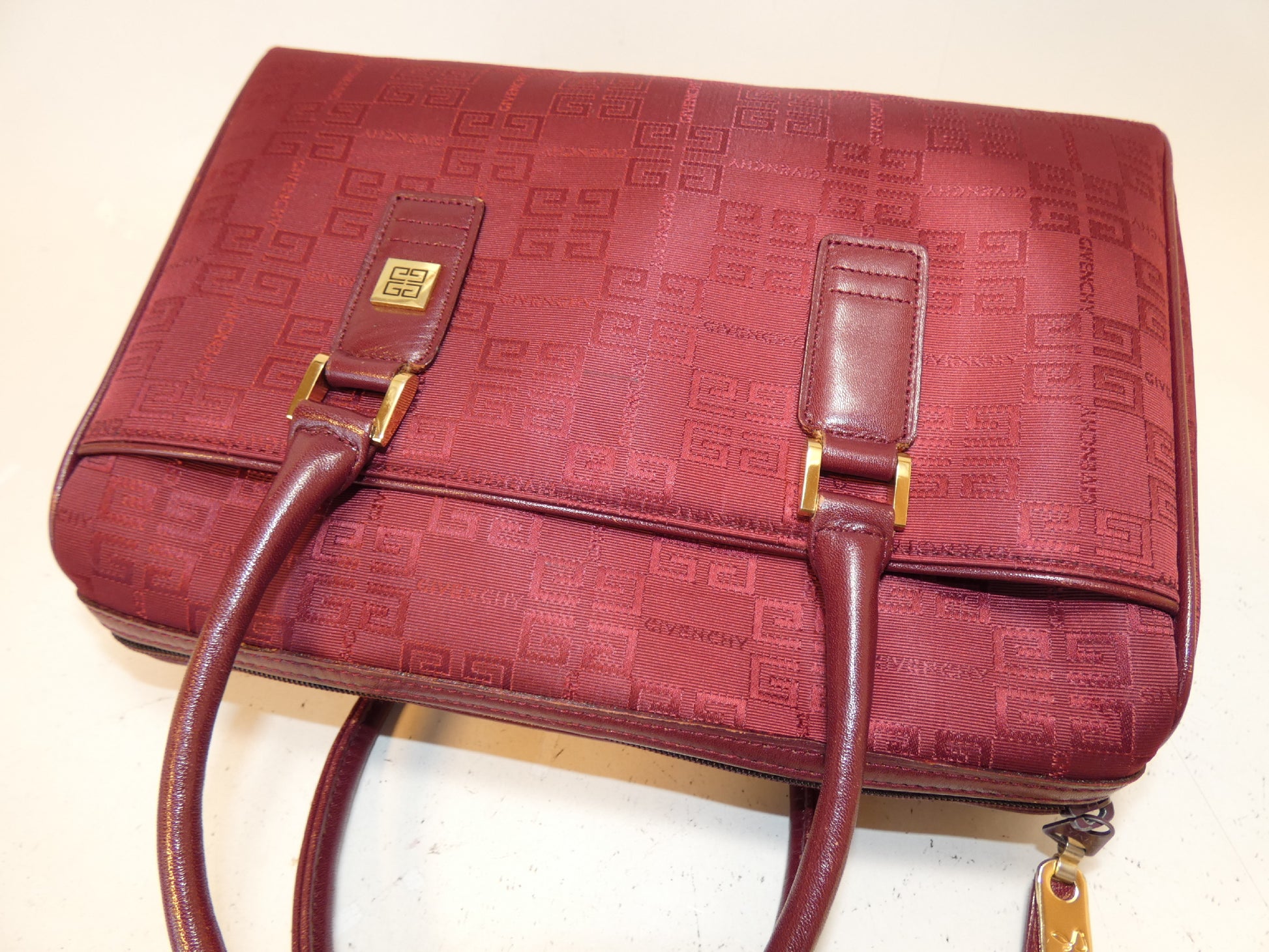 GIVENCHY Logo Bordeaux Canvas and Leather Hand Boston Bag