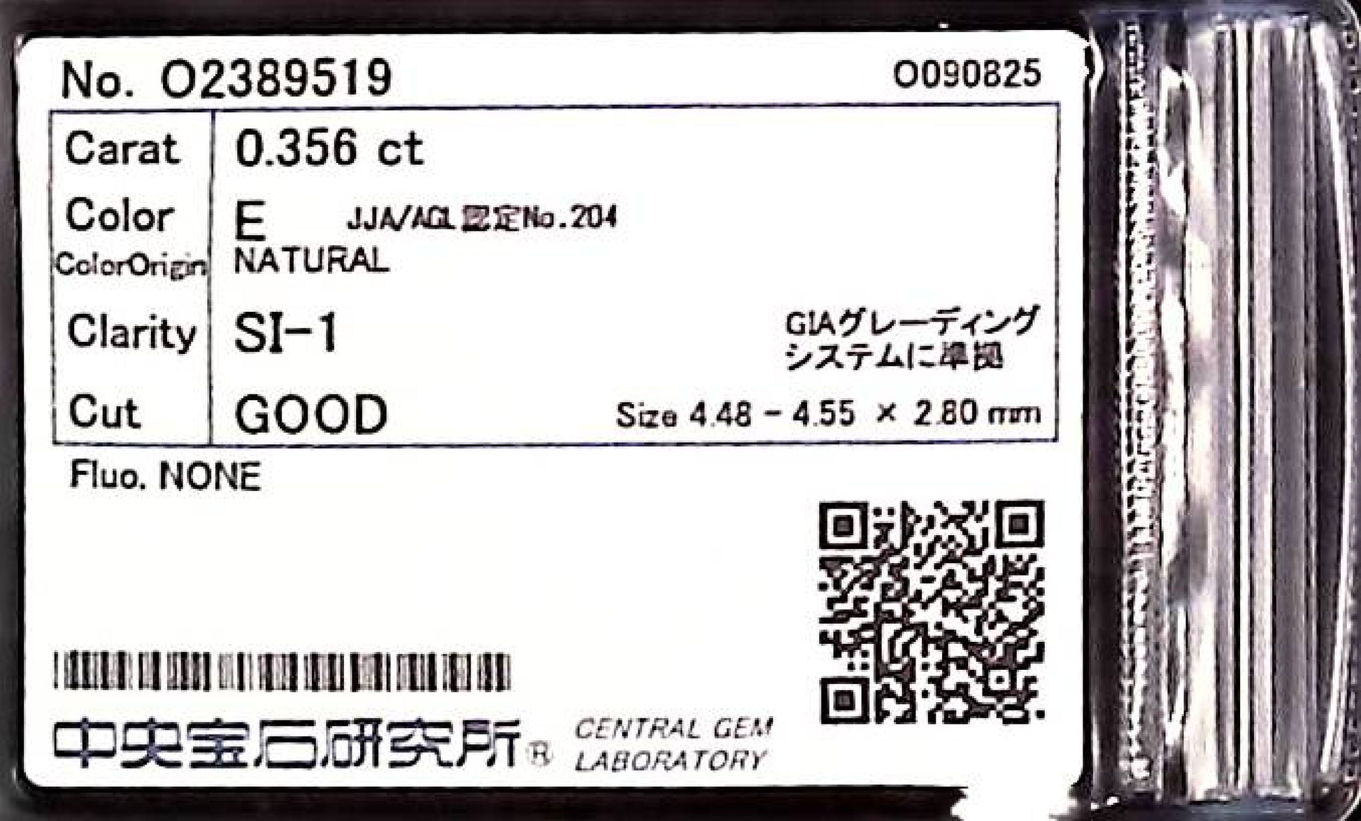 0.356ct E SI-1 GOOD/GD/FR NONE NATURAL 4.48-4.55X2.80mm Diamond Loose
